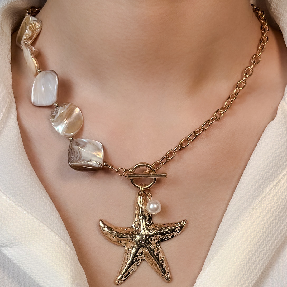 گردنبند صدف آبالون یکطرفه با ستاره دریایی کد 10114